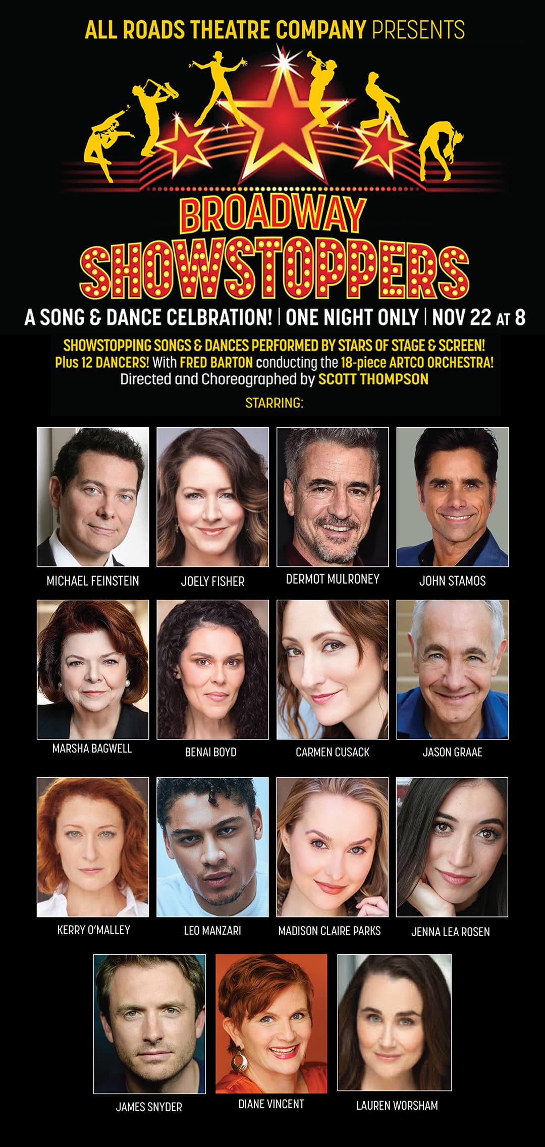 ARTCO’s lavish 18-piece orchestra and twelve of LA’s most exciting dancers, in support of our headliners, will make “BROADWAY SHOWSTOPPERS” a thrilling evening of one pulse-raising performance after another!